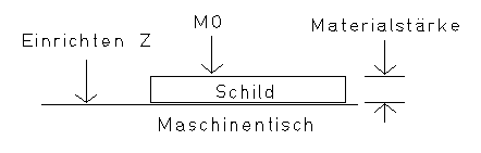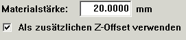 Wird die eingestellte Materialstärke auf den (in der Handsteuerung eingerichteten) Nullpunkt der Z-Achse mit aufaddiert. Der Nullpunkt in Z entspricht bei Schildern normalerweise der Materialoberfläche: