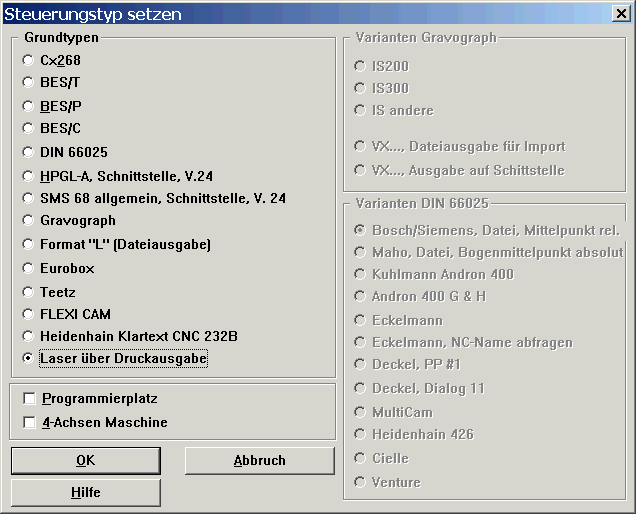 Maschinenausgabe muss die Ausgabe an den Laser erfolgen (nicht über
