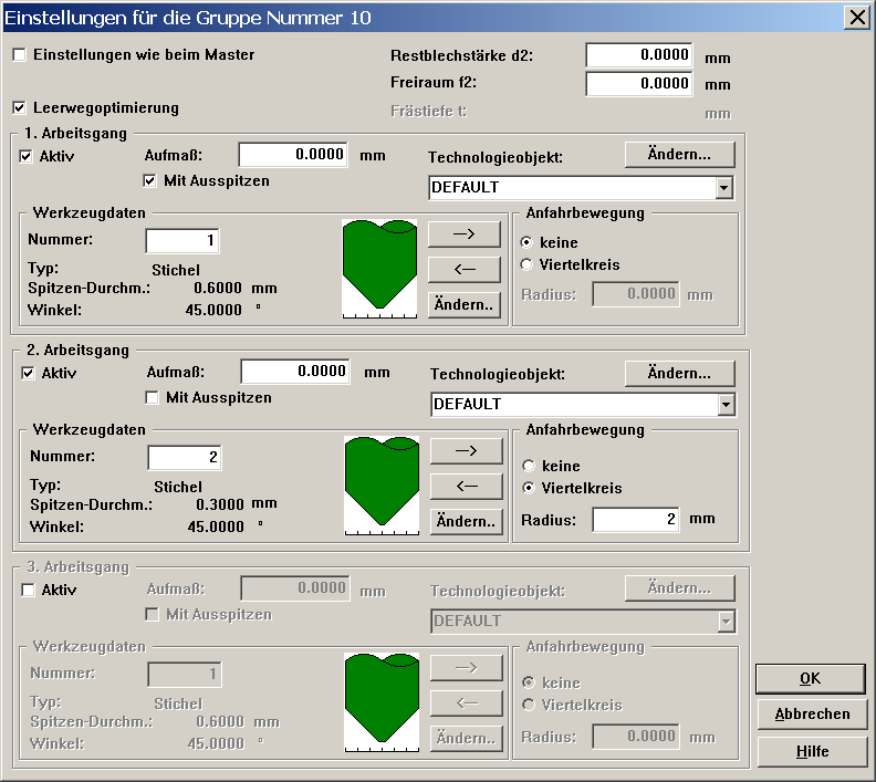 Werkzeug angegeben, da dies am dichtesten an der fertigen Schneide liegt.