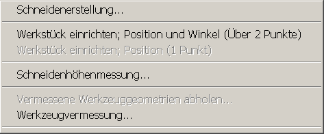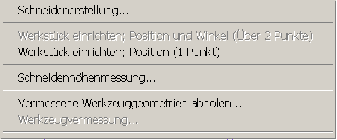 Die Vermessung wird in dem Popup Menü (Tool Schneidenerstellung anwählen Klick